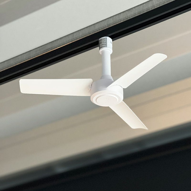 自宅や店舗・事務所の天井にある照明用ダクトレールに 簡単に取り付けができる空気循環アイテム。 取り付け、取り外しはワンタッチででき、 付属のリモコンでの操作が可能な為、 使いたい場所で手軽に空気循環できます。 Φ40cmサイズのコンパクト、超軽量タイプなので、 一般的なシーリングファン(約4kg~)では 取り付けが不安な場所やレストルームといった 比較的小さめなお部屋でも使えるアイテムです。