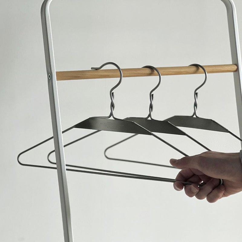 シンプルながらもステンレスの無骨さがクールなワイヤーハンガー。 中央のプレートには【PUEBCO】のブランドロゴが印字されており、 お気に入りのお洋服を掛けたくなるような、存在感のあるハンガーです。 ※セット販売ではございません。価格は1つの値段となります。