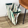 カフェの客席で見られるような、 バッグや荷物を入れて使うストレージバッグ。 ソファやチェアの横に置いておけば、 バッグの定位置としてはもちろん、 本やラップトップ、ブランケットなどの収納にも便利です。 スチールフレームとコットン生地を組み合わせた、 PUEBCOらしいラフで実用的なデザインも魅力。 使わないときは折りたたんでフラットに収納できるため、 場所を取らずすっきりと保管することができます。 リビングや寝室、ワークスペースなど、 さまざまなシーンで活躍する便利なアイテムです。 【PUEBCO-プエブコ-】 「作りたいものを作る。欲しいものを作る。」 そんなシンプルな考えからスタートしたブランドです。 リサイクル素材やデッドストック生地など、 さまざまな素材を活かしたプロダクトは、 ラフでヴィンテージ感ある独特の雰囲気が魅力。 日常の中で使える実用性と、 どこかユニークで味わいのあるデザインが、 暮らしにさりげない個性を添えてくれます。
