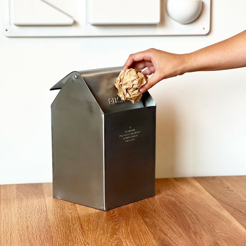 カウンターや机の上でも使えるコンパクトなダストビン。 蓋つきで中身が見えないデザイン。蓋は振り子式で両面からゴミを入れることができ、機能性も抜群です。 スチールの重厚感がインテリアにスパイスを効かせてくれます。
