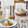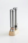 料理の最後の仕上げにも、食事中の一足しにも便利なアイテムです。 ステンレスの質感は清潔感があり、スタイリッシュな印象です。 粗いものから細かいものまで、好みに合わせた挽き方を自在に調節でき、 片手で操作できるサイズ感で、食材を混ぜたり炒めたりする手を休めず使用することができます。サビの心配がなく、岩塩にも使用できる丈夫なセラミック製の刃を使用。 摩擦熱で飛びやすい胡椒の香りも保ちます。専用スタンド付き。