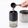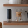 ボタンひとつで手軽に挽きたてのコーヒーが楽しめる、 ±0の電動コーヒーミル。 スイッチを押すだけで自動で挽き始め、 豆が挽き終わると自動で停止。 刃には摩擦熱の少ないセラミック製コニカル刃を採用。 コーヒー豆の香りや風味を損なわず、 好みに合わせた挽き目に調整できます。 USB充電式なので、キッチンだけでなく アウトドアやキャンプでも活躍。 シンプルで美しいデザインは、キッチンや、 ダイニングの空間にも自然と馴染みます。 挽きたての香りとともに、 毎日のコーヒー時間を 少し特別なひとときにしてくれるアイテムです。