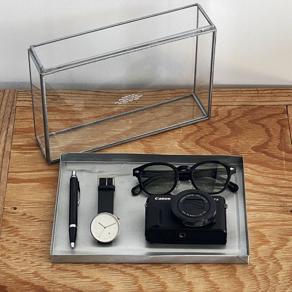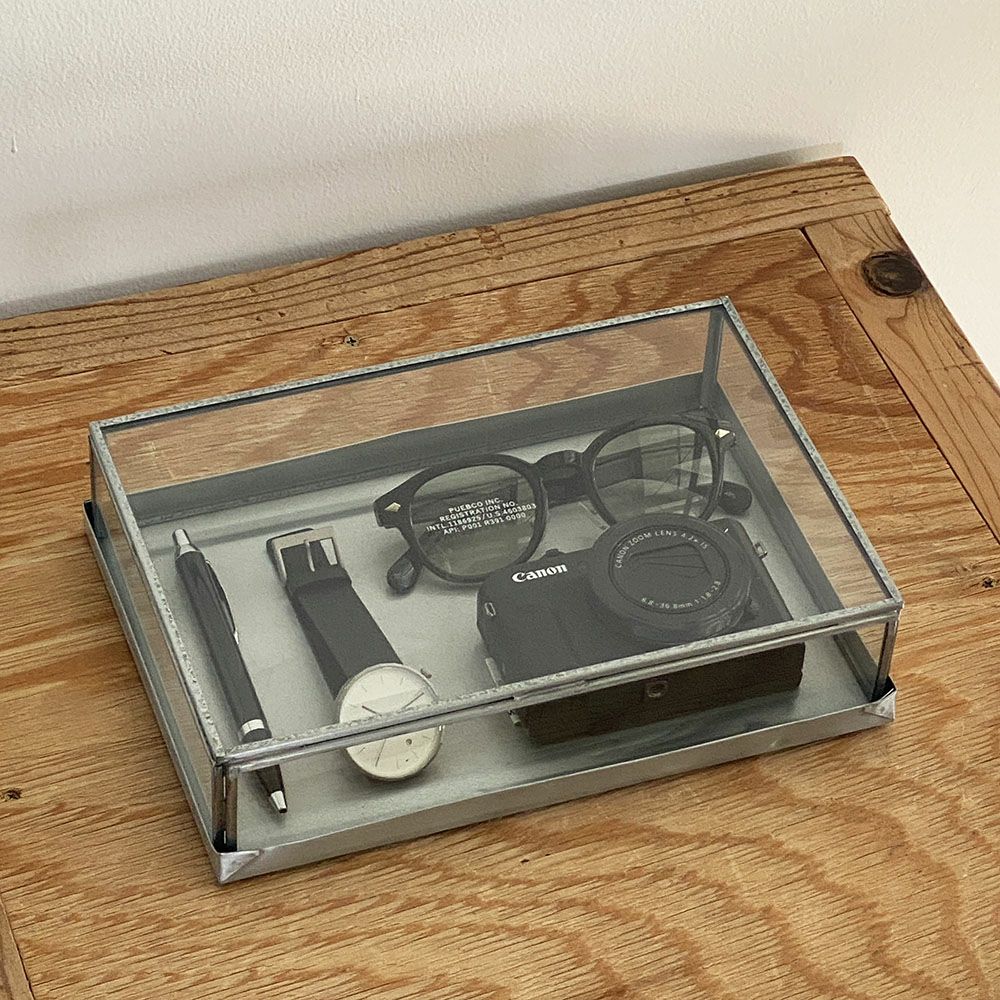他の画像を見る ユーズドのオイル缶を再利用して作られた、フタ付きの収納ボックス GLASS BOX WITH RECYCLE STEEL LID【Jewelry Double】 ¥ 3,520 税込 カートに入れる お気に入りに登録する