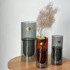内側と外側でガラスが二重になった構造が特徴の花瓶。 光が当たると層の中に陰影が生まれ、 花や植物がふわりと浮いて見えるような、 奥行きのある表情が楽しめます。 小ぶりな花や枝ものでも自然と形が整うため 日常の花をさっと飾るだけで絵になる佇まいに。 リビングのテーブルや玄関に置くだけで、 空間が洗練された印象に変わり、 季節の植物がより魅力的に感じられます。 透明感と立体感を兼ね備えた美しい仕立ては、 インテリアのアクセントにも最適。 花を引き立てながら存在感のある佇まいを生む、 ダブルウォールのガラスベースです。